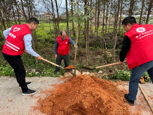 植樹現(xiàn)場,大家干勁十足,揮鍬鏟土、扶樹定根、培實(shí)新土,澆水灌溉,用心種下一顆顆樹苗。在全體人員的團(tuán)結(jié)協(xié)作下,共種下樹苗數(shù)十顆,以實(shí)際行動踐行“綠水青山就是金山銀山”的生態(tài)文明理念,為推動家鄉(xiāng)綠化、打造綠美生態(tài)貢獻(xiàn)一份力量。
