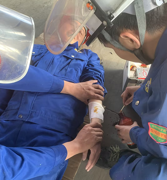 叉車司機王根立即停止作業(yè),并大喊:“撞人了,撞人了”,周邊同事聽到后,迅速過來幫助受傷人員躺平,并上報車間主任,車間主任接報后,立即組織救援人員趕赴現(xiàn)場,查看受傷人員傷勢情況,查看到傷勢比較嚴重,立即組織人員進行簡單包扎處理,簡單處理后,使用擔(dān)架抬傷員到公司車輛并送到醫(yī)院就診。