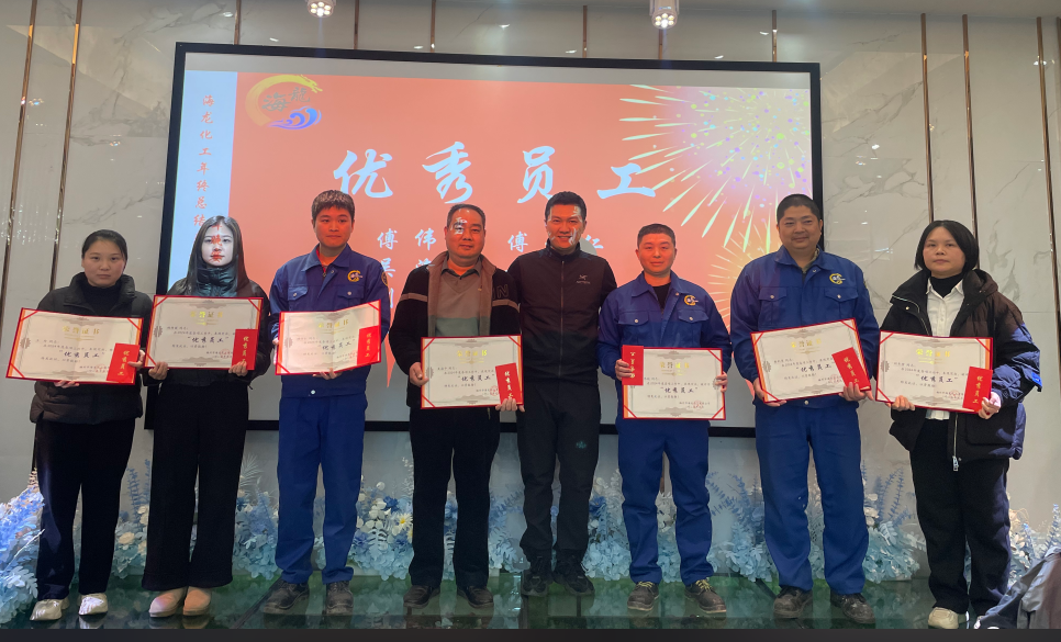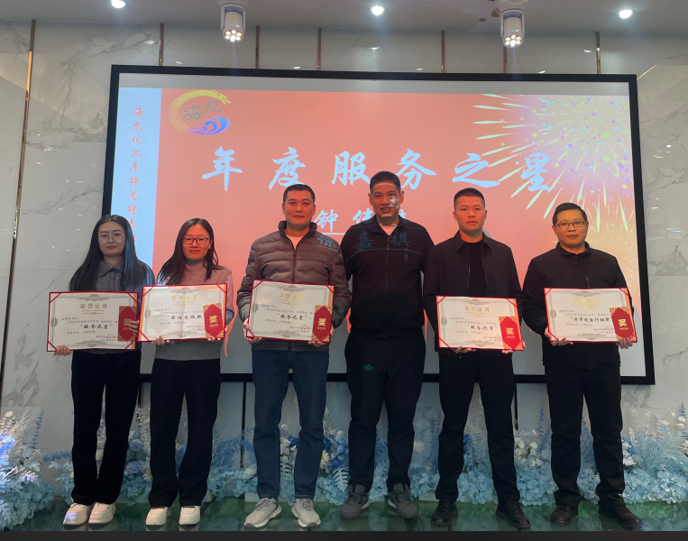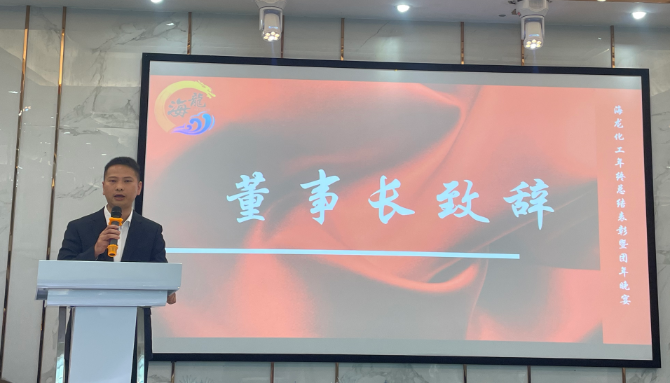 祥龍辭歲福澤厚,靈蛇納祥好運(yùn)來。海龍化工2024年終總結(jié)表彰大會(huì)暨團(tuán)年晚宴于1月14日宴慶樓酒店盛大召開。會(huì)議旨在回顧公司的發(fā)展歷程及全面總結(jié)2024年工作成果,并為2024年取得優(yōu)異成績和為公司作出突出貢獻(xiàn)的管理人員、優(yōu)秀員工、優(yōu)秀團(tuán)隊(duì)等給予了表彰和頒獎(jiǎng)。