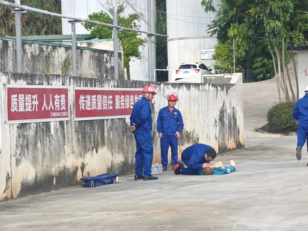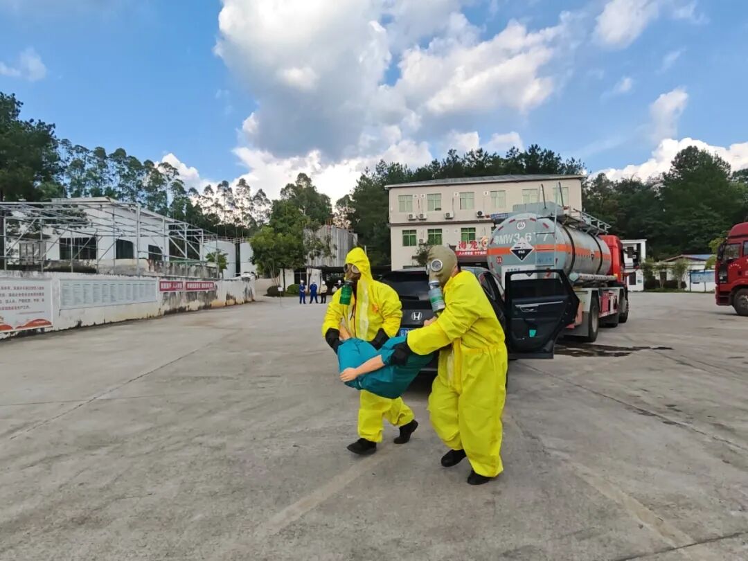 為進(jìn)一步提高員工安全意識,檢驗(yàn)公司生產(chǎn)安全事故應(yīng)急預(yù)案體系的科學(xué)性、銜接性和可操作性,增強(qiáng)對氨水泄漏事故專項(xiàng)應(yīng)急處置能力,確保事故發(fā)生后能夠及時(shí)、高效、有序地進(jìn)行應(yīng)急處置工作,2025年10月16日下午,海龍化工及海龍運(yùn)輸公司在文福化工廠區(qū)組織開展了相關(guān)應(yīng)急演練活動(dòng),公司董事長賴仕海先生出席了此次活動(dòng)。